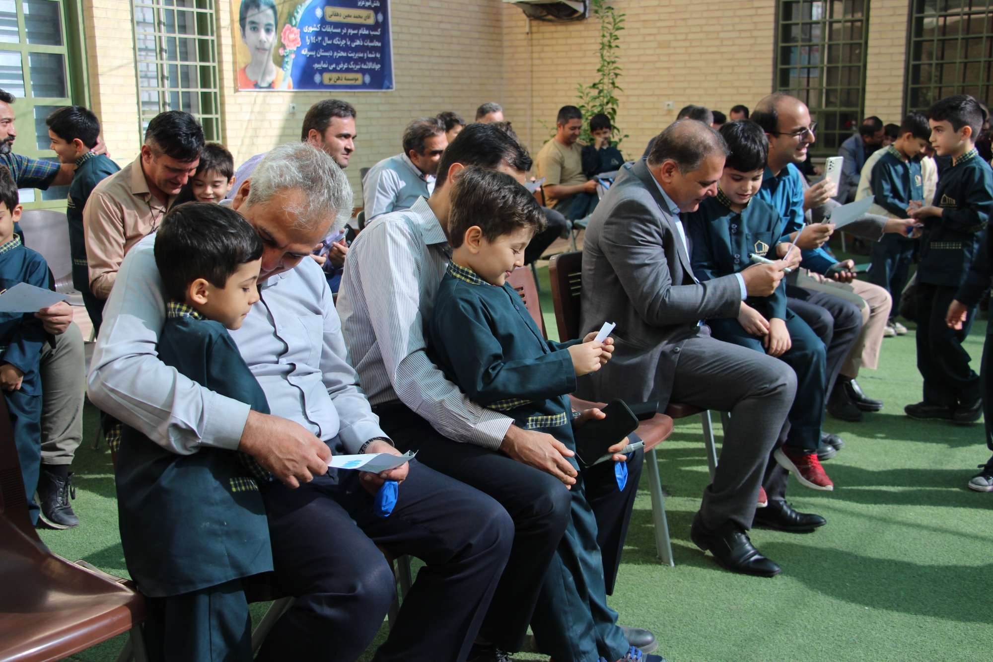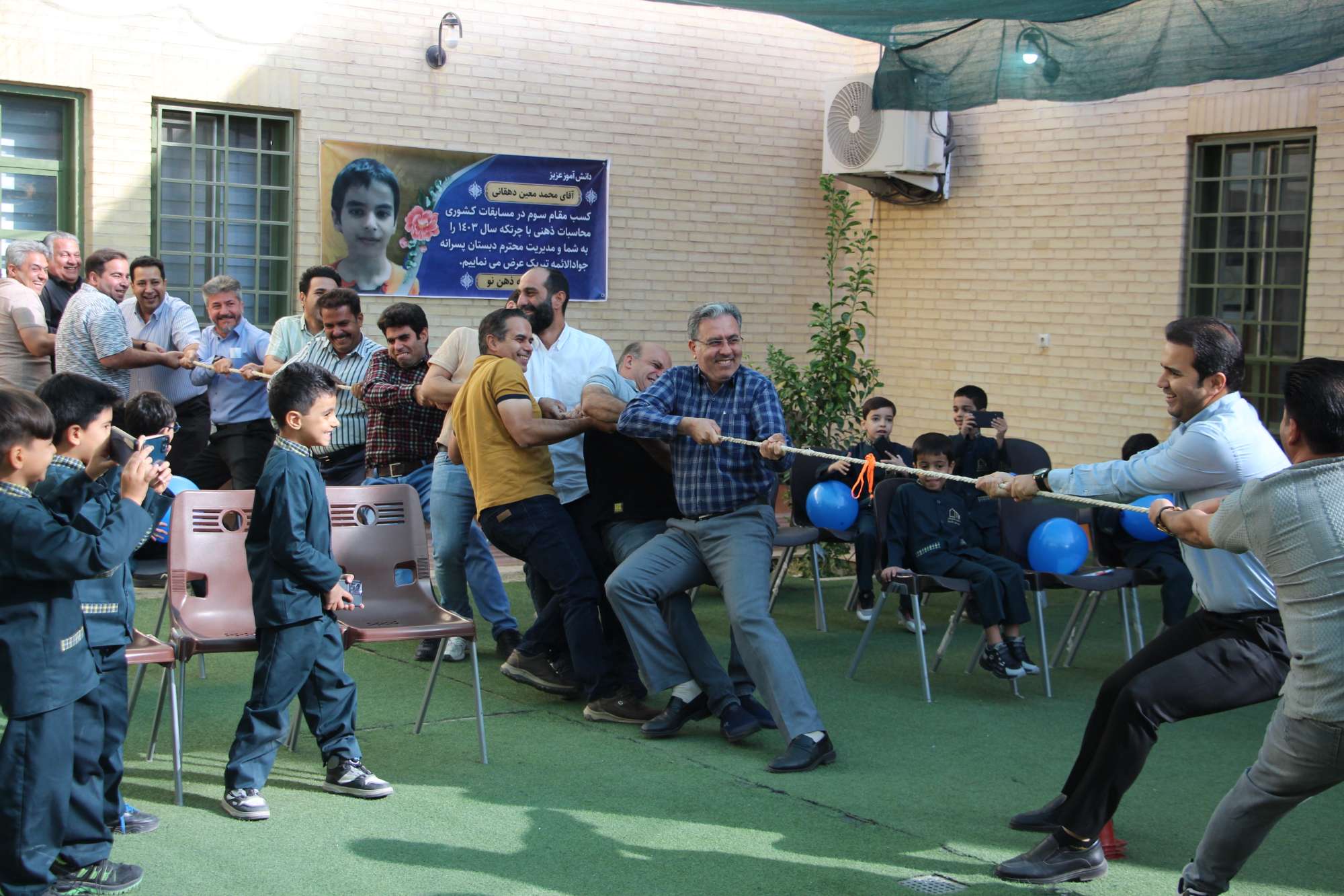 به مناسبت یادگیری کلمهی «بابا»، دانشآموزان پایه اول مدرسه ما با شور و شوق فراوان جشن ویژهای را برگزار کردند. در این جشن از بابای دانشآموزان دعوت کردیم تا به مدرسه بیایند و در یک مسابقه مهیج با فرزندان خود شرکت کنند. در این برنامه، پدران و فرزندان با همکاری یکدیگر در فعالیتهای متنوعی شرکت کردند و با هیجان و شادی به رقابت پرداختند. این مسابقات شامل بازیهای آموزشی و فعالیتهای گروهی بود که به تقویت ارتباط عاطفی و یادگیری بهتر کمک کرد. این جشن فرصت مناسبی بود تا دانشآموزان تواناییهای نوشتاری خود را در نوشتن کلمه «بابا» به نمایش بگذارند و پدران نیز لحظات خوشی را با فرزندان خود تجربه کنند. از همه پدران عزیز که در این جشن شرکت کردند و به شادی و یادگیری فرزندان خود کمک کردند، سپاسگزاریم. امیدواریم با برگزاری اینگونه برنامهها، بتوانیم ارتباط بین خانواده و مدرسه را تقویت کنیم.