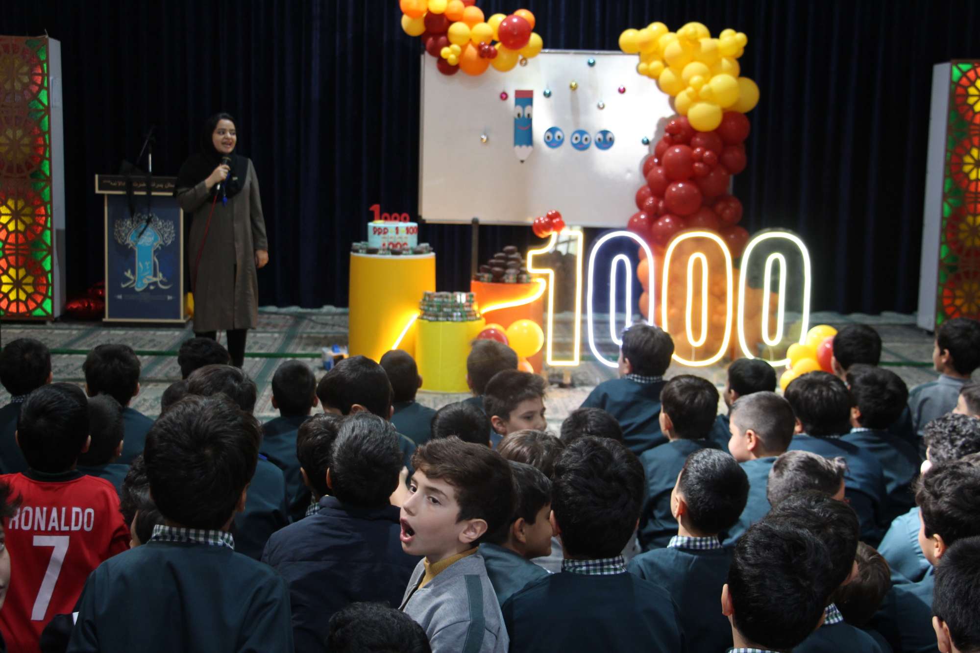 به مناسبت یادگیری مبحث «هزار»، دانش‌آموزان پایه سوم مدرسه ما جشن ویژه‌ای را برگزار کردند. این جشن، که با هدف ایجاد علاقه و یادگیری بهتر مفاهیم ریاضی طراحی شده بود، در سالن دبیرستان پسرانه برگزار شد.